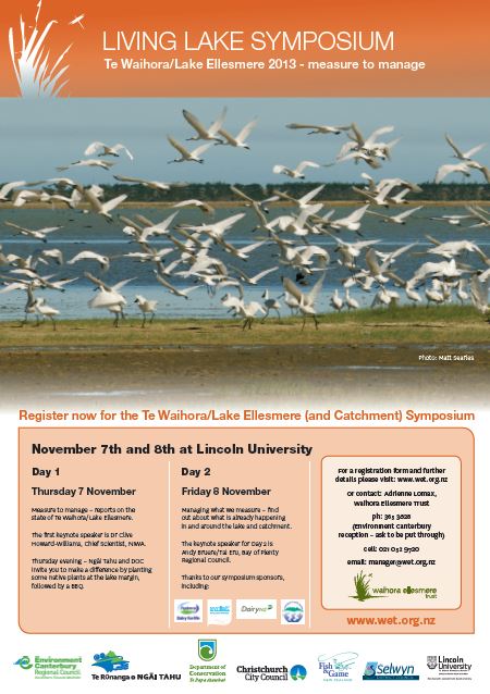 The 2013 Living Lake Symposium was held at Lincoln University on November 7 & 8. Thanks to all the presenters and to everyone who attended for making another successful and thought provoking event.
